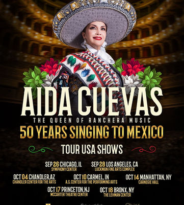 Aída Cuevas, conocida como “La Reina de la Música Ranchera”, es una de las voces más icónicas y representativas de la música tradicional mexicana. Con más de 50 años de trayectoria, ha conquistado escenarios en todo el mundo y se ha convertido en la única mujer del género mariachi en recibir tanto un Grammy como un Latin Grammy, consolidando su lugar en un ámbito tradicionalmente dominado por hombres. A lo largo de su carrera ha lanzado 35 álbumes, obteniendo múltiples reconocimientos de instituciones y gobiernos internacionales. Su potente voz, carisma y profundo amor por México la han llevado a ser considerada una leyenda viviente y la última gran reina del género ranchero. Su legado sigue inspirando a nuevas generaciones, manteniendo viva la esencia de la música vernácula.
